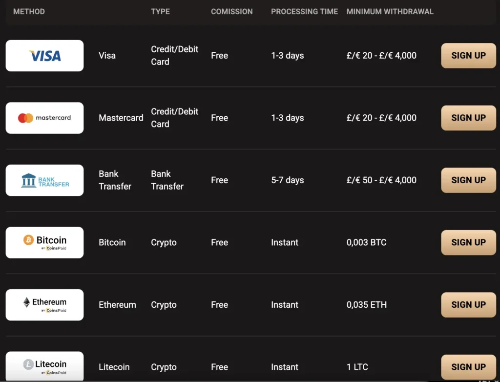 This is perhaps the most important section, especially for players who want to cash out big from the casino. We offer a variety of trusted payment options made for the UK market. Deposits are processed quickly, and withdrawals are generally quick once your LegionBet online casino account is verified.