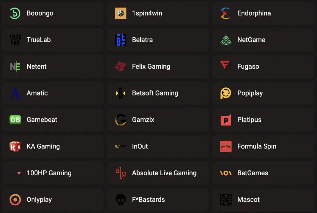 | Yggdrasil | BGaming | IG Tech | TrueLab | NetGame |